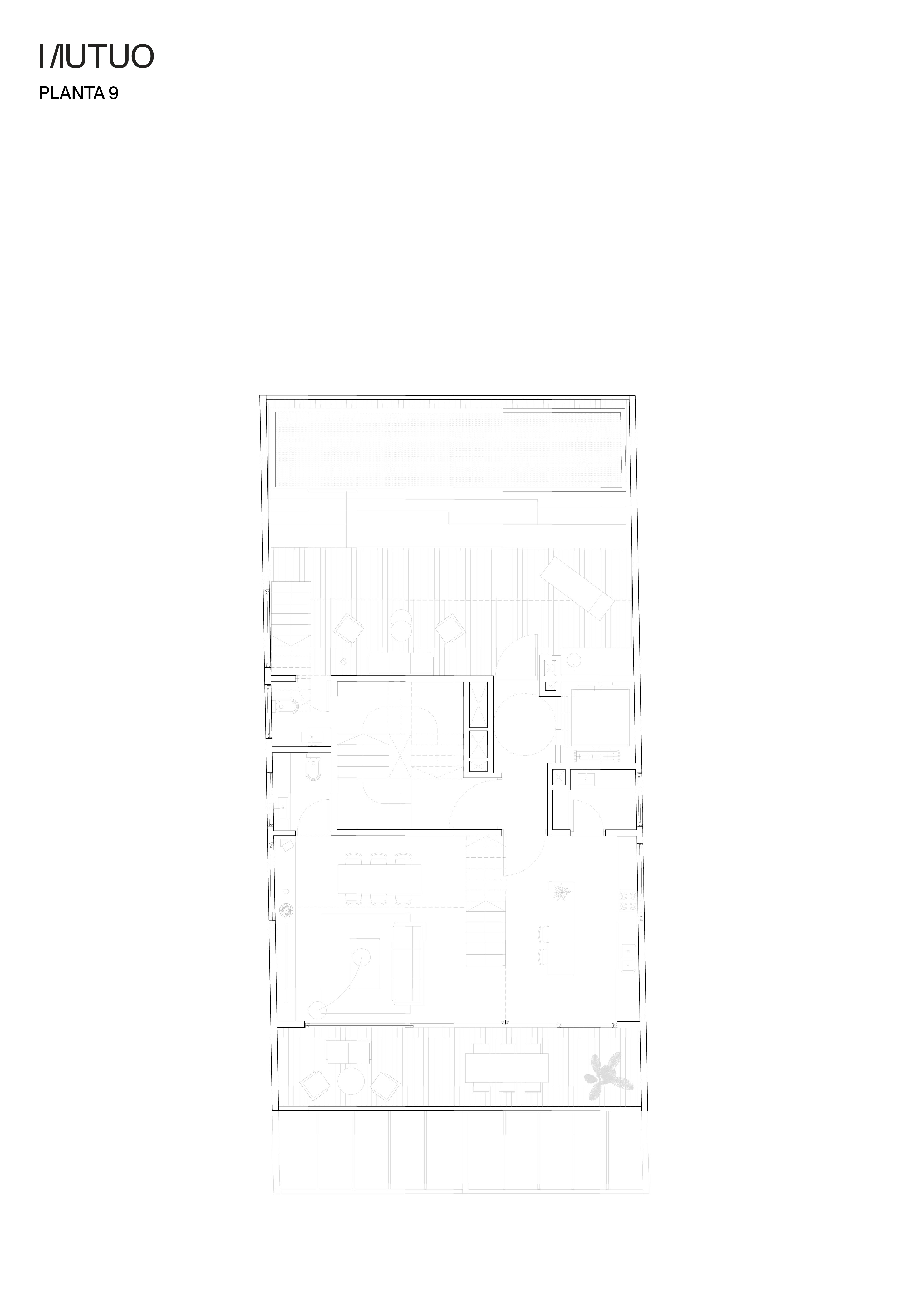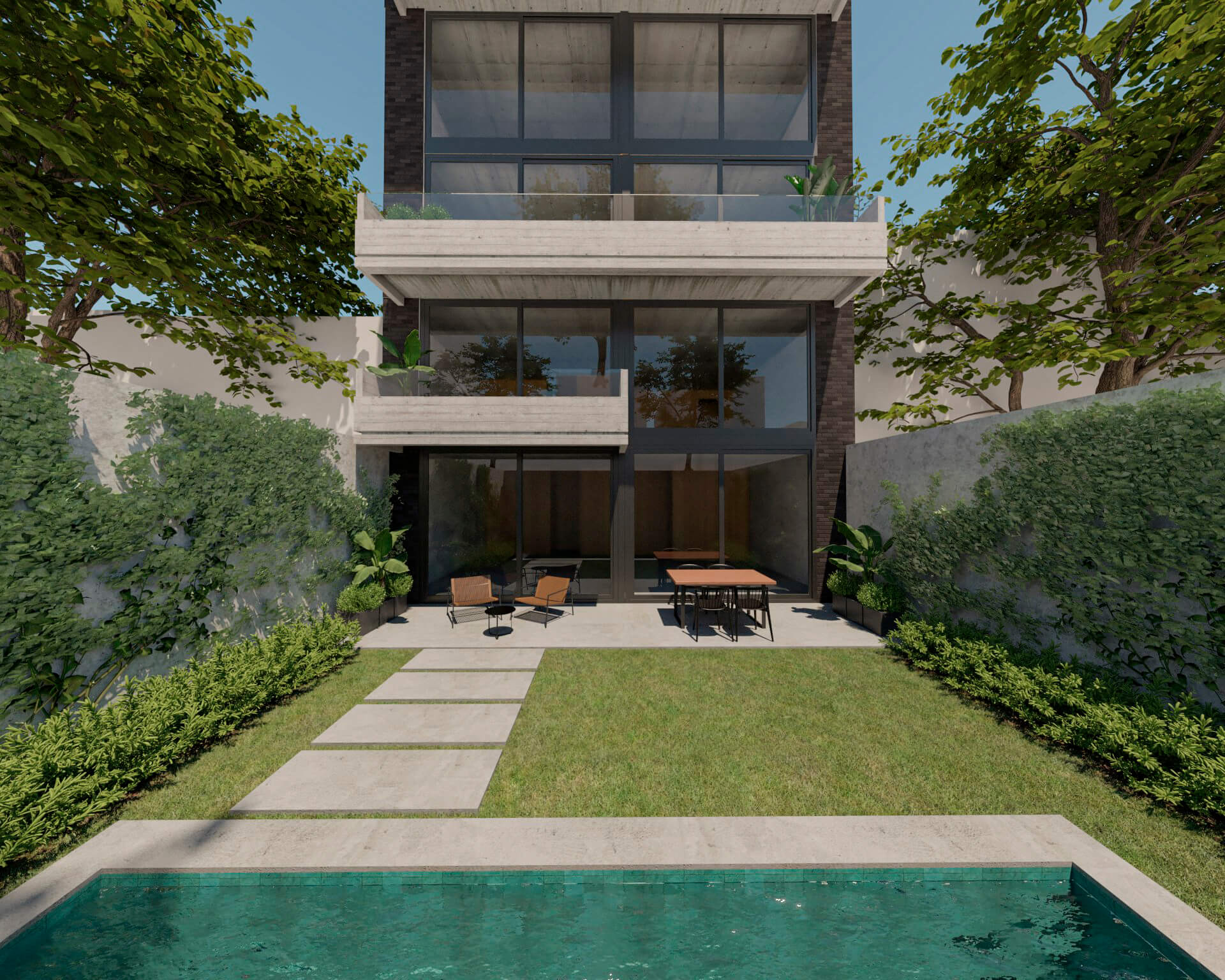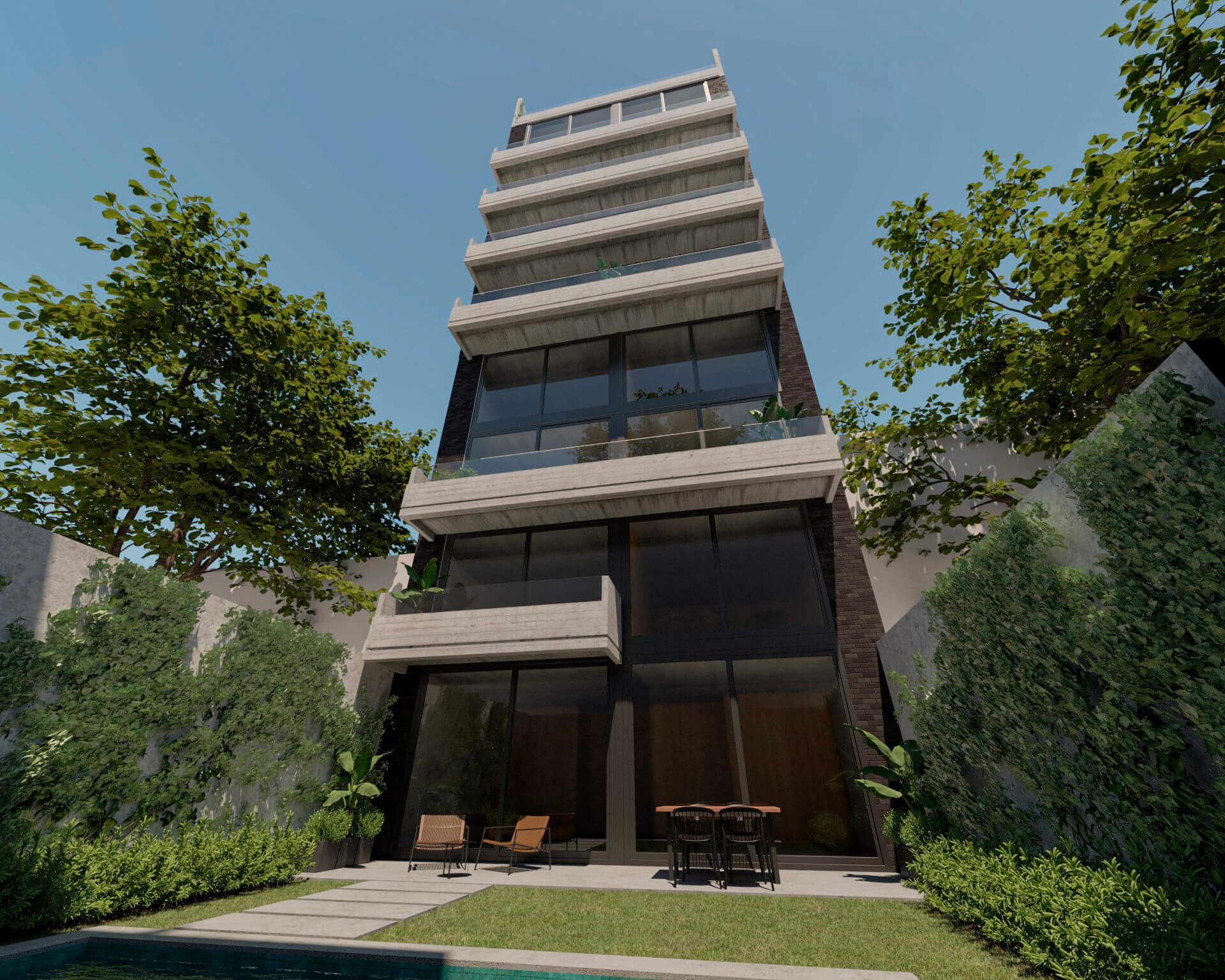 El edificio se proyecta con un frente de plaza verde y un contrafrente abierto que permite la inmersión de luz. Cuenta con 20 unidades de 1,2 y 3 ambientes desde 36 m2 a 98m2 con amplias terrazas, parrillas privadas, patios, cocheras y bauleras. Espacios de encuentro que comprenden un SUM, piscina, espacio co-working y sala de lectura. Una propuesta de flexibilidad para la vinculación de unidades de un producto taylor made.