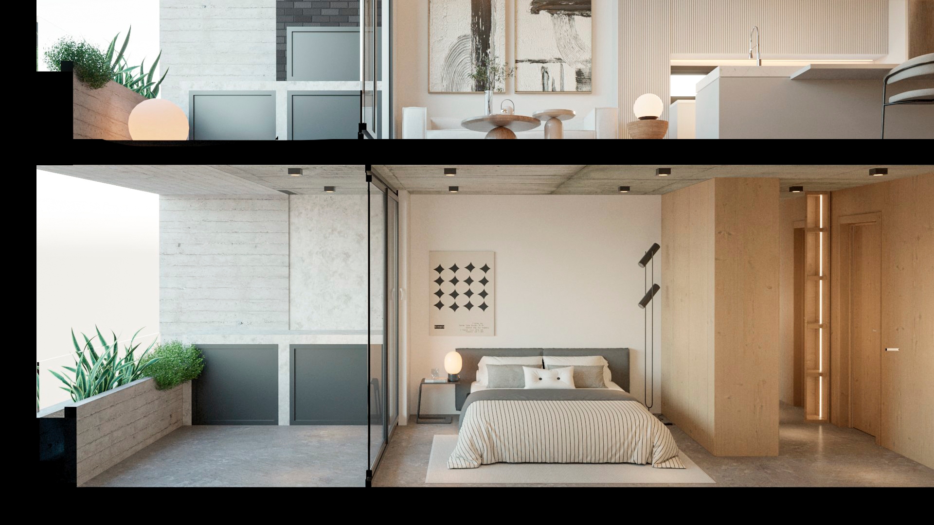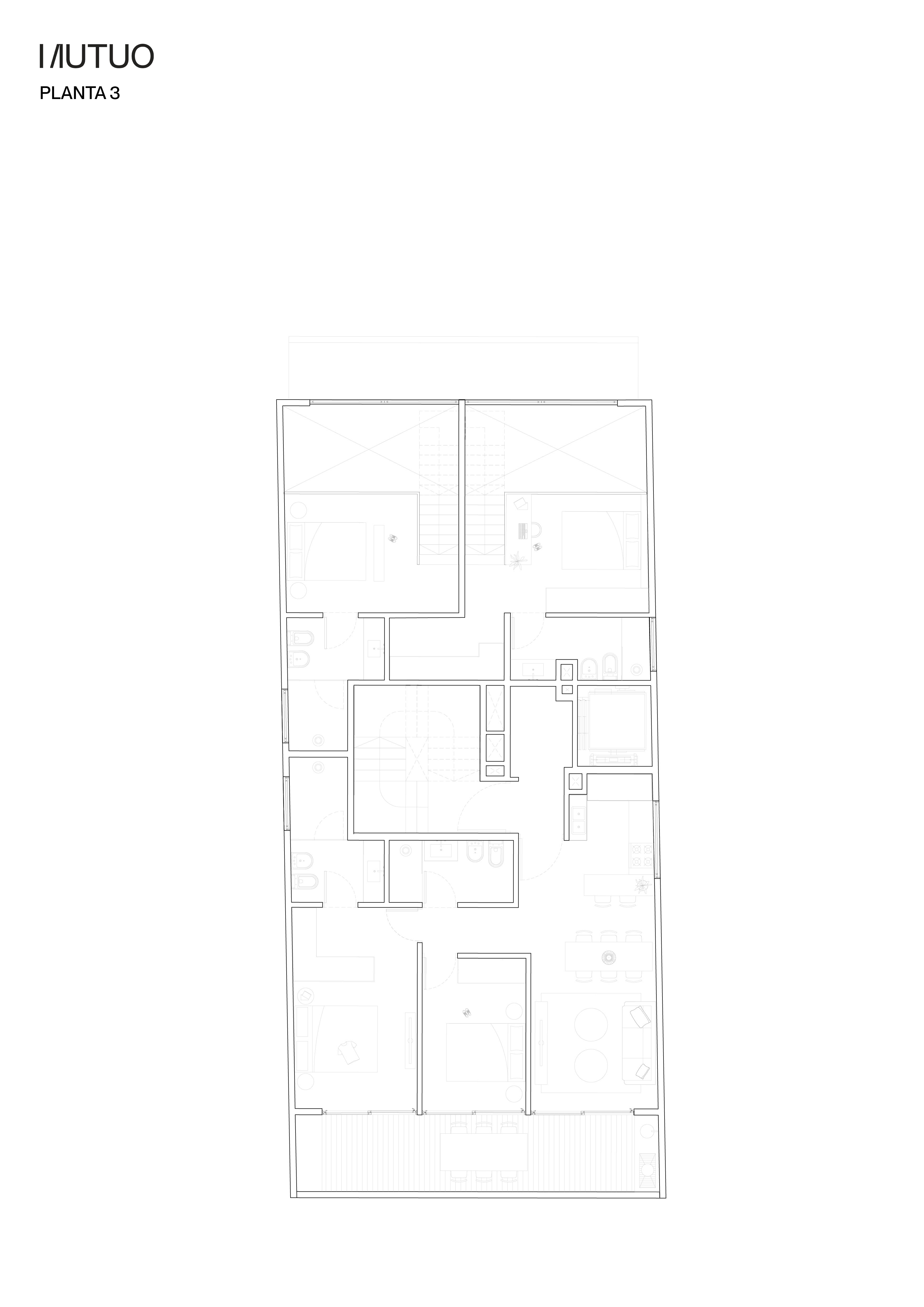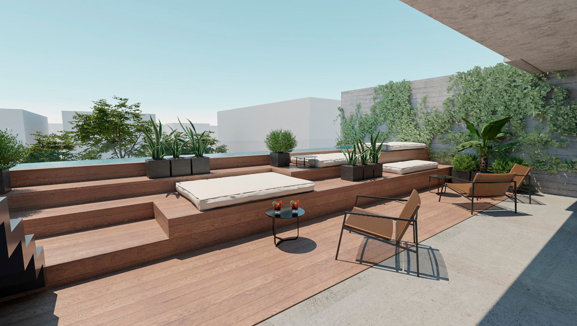 El edificio se proyecta con un frente de plaza verde y un contrafrente abierto que permite la inmersión de luz. Cuenta con 20 unidades de 1,2 y 3 ambientes desde 36 m2 a 98m2 con amplias terrazas, parrillas privadas, patios, cocheras y bauleras. Espacios de encuentro que comprenden un SUM, piscina, espacio co-working y sala de lectura. Una propuesta de flexibilidad para la vinculación de unidades de un producto taylor made.