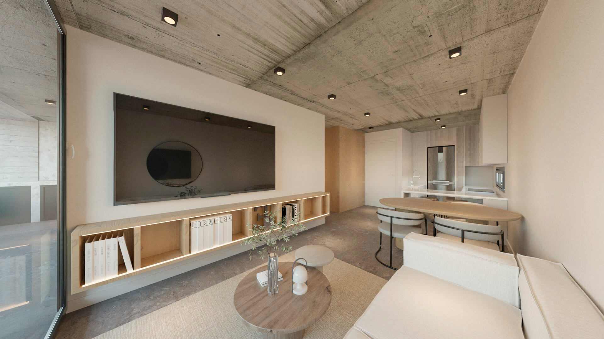 TINTA by MUTUO es una propuesta diferente, donde los departamentos ofrecen amplitud y luminosidad, con ventanales en doble altura que enmarcan vistas al verde permitiendo que la plaza sea parte del hogar. En su interior, los espacios abiertos y las líneas limpias evocan la organización de una biblioteca moderna: orden, calma y sofisticación.